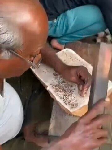インド・ジャイプールの工芸品でハンドブロックプリントというプリント方法で、
