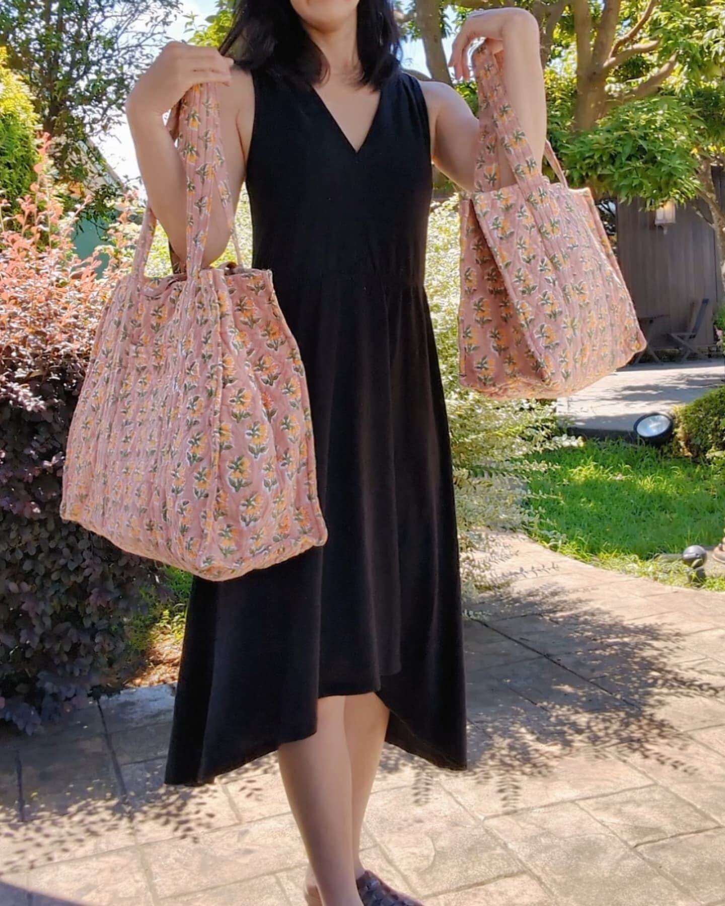 そんな手間のかかった生地をさらにキルトにして、出来上がったトートバッグをご紹介していますᕷ*.°